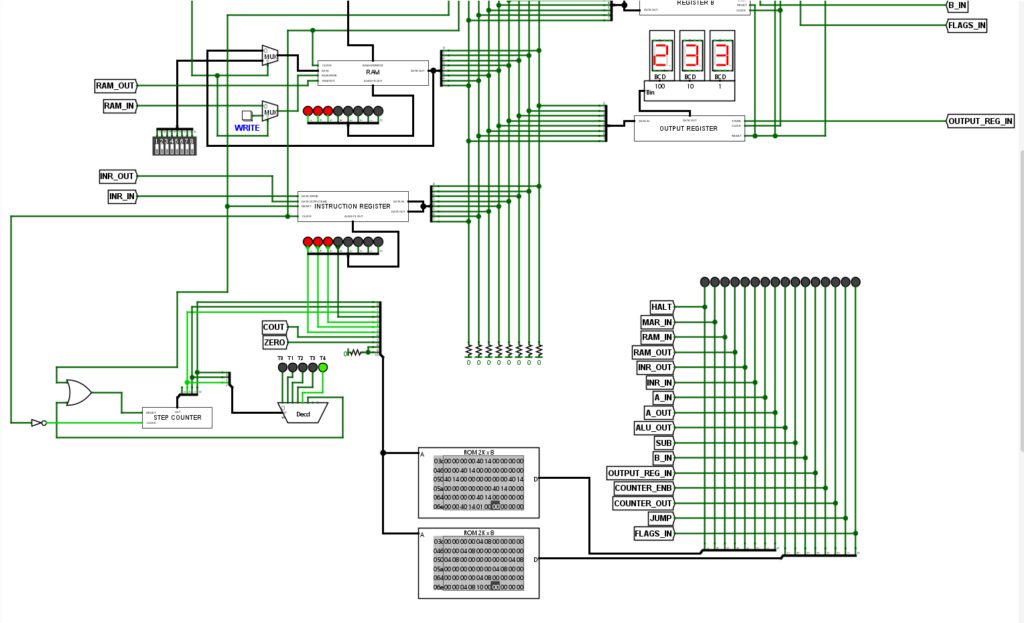The result is a working microcoded CPU that can fetch, decode, and execute instructions step by step.